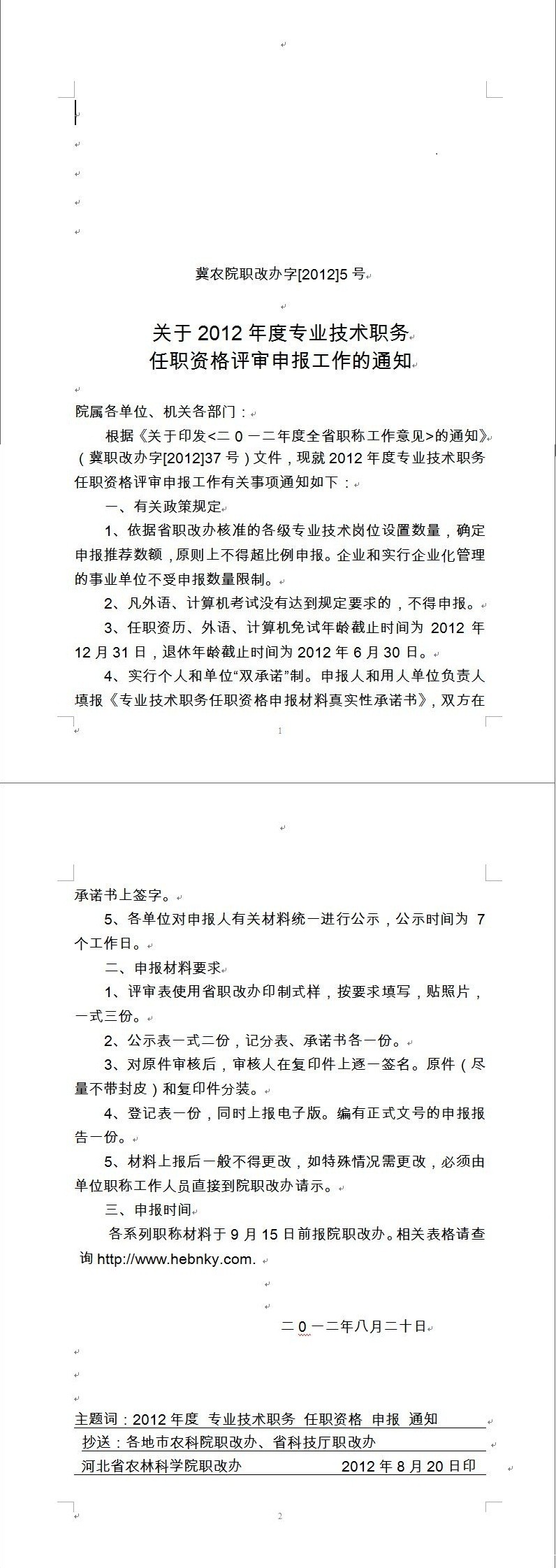 关于2012年度专业技术职务任职资格评审申报工作的通知