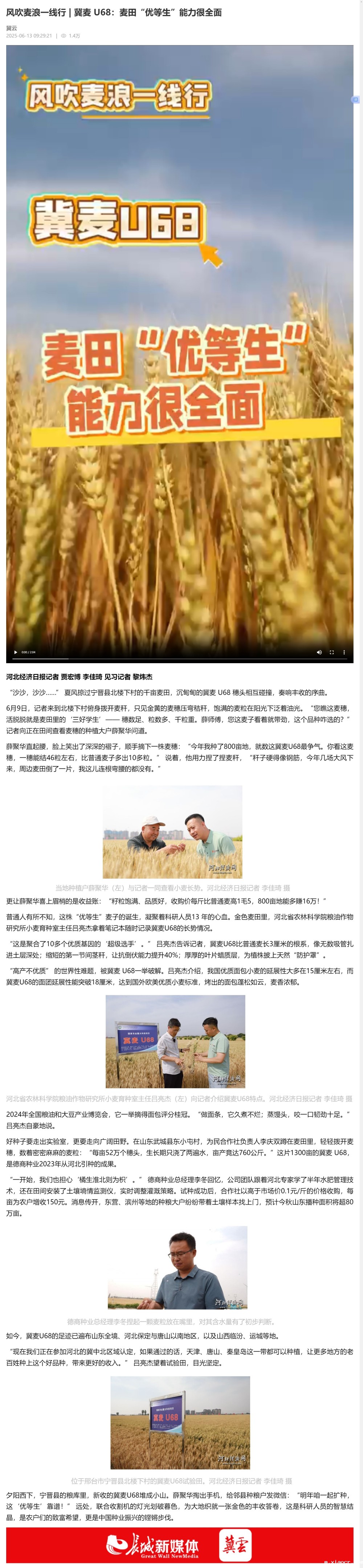 如今,冀麦U68的足迹已遍布山东全境、河北保定与唐山以南地区,以及山西临汾、运城等地。