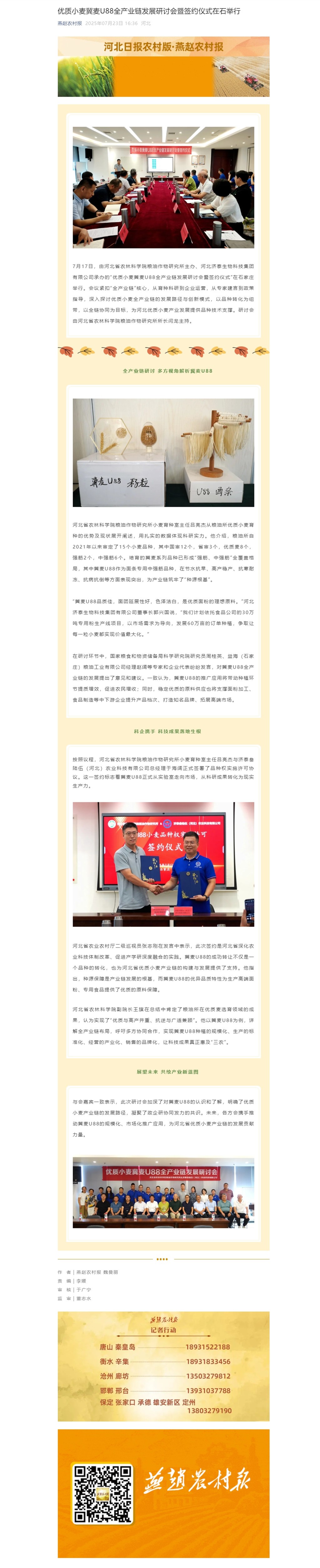 全产业链研讨 多方视角解析冀麦U88