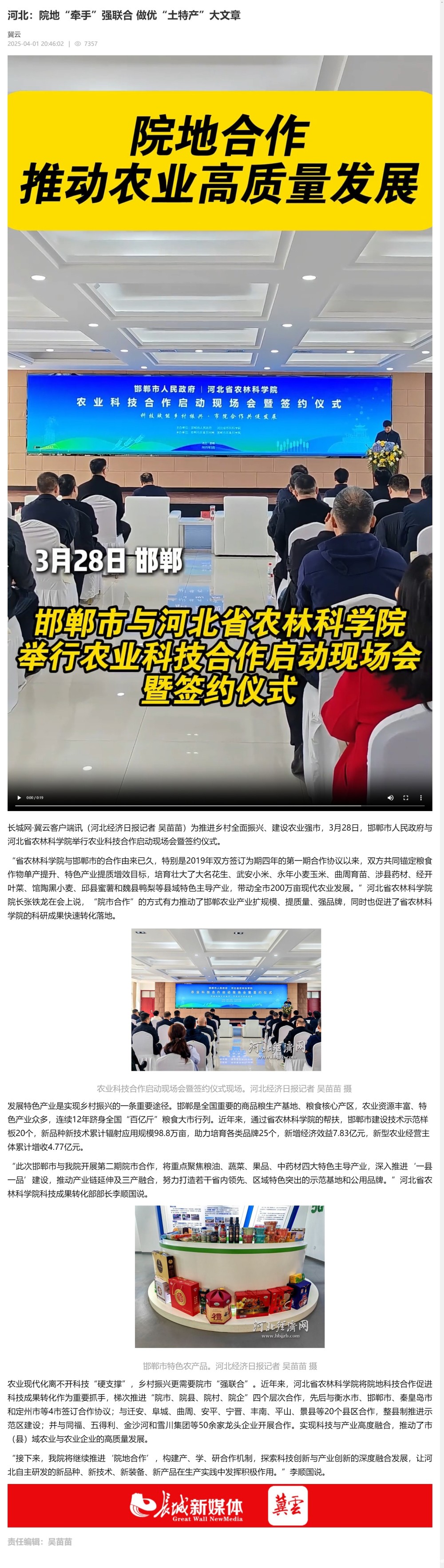 为推进乡村全面振兴、建设农业强市,3月28日,邯郸市人民政府与伟德bevictor中文版下载举行农业科技合作启动现场会暨签约仪式。