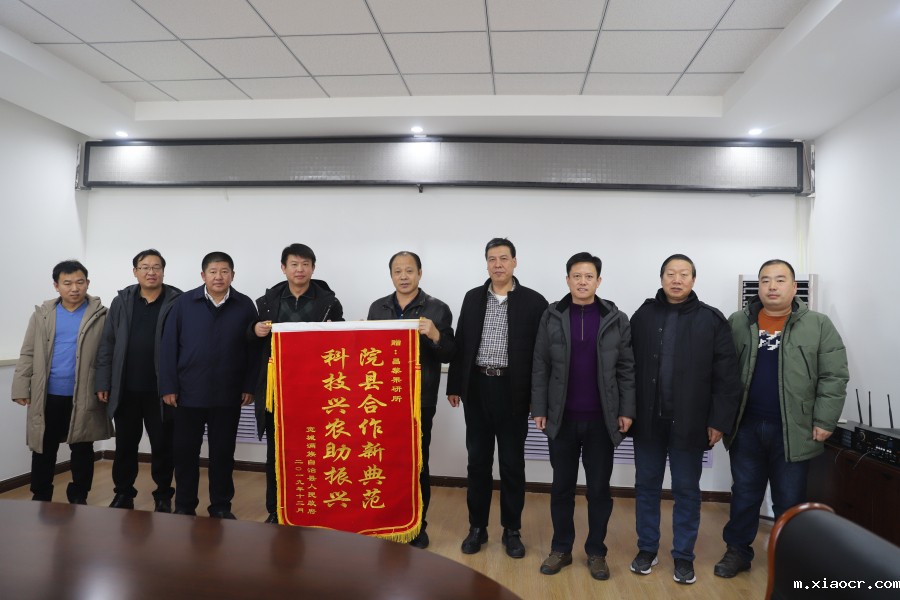 2019年12月31日,宽城县政府副县长赵刚带领宽城县林草局局长徐庆丰、副局长何向金及相关技术人员到昌果所赠送写有“院县合作新典范、科技兴农助振兴”的锦旗,肯定了该所领导、专家多年来对宽城县的农业科技支持,衷心感谢昌果所专家常年到宽城县进行技术指导及培训,将自研新品种、新技术带到宽城,为百姓增收、科技扶贫做出的积极贡献,并希望昌果所今后能一如既往的对宽城林果产业发展给予大力支持。闫希光所长表示,昌果所的科研成果能在宽城地区开花结果,并为百姓增收、产业振兴提供技术支撑,也是该所科研工作的初心,今后将继续与宽城县政府密切合作,为宽城的林果产业振兴做出积极贡献。