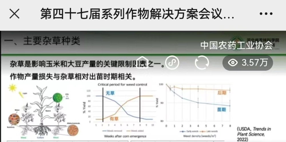 粮油所杂草研究室主任刘小民博士受邀进行大豆玉米复合种植除草技术报告,为切实解决大豆玉米带状复合种植过程中遇到的技术难题,确保技术到位,助力大豆玉米带状复合种植田块丰产丰收提供了有力的技术支撑。截至目前,玉米种植户、合作社、经销商及基层技术服务人员等约3.57万人次线上参与学习。