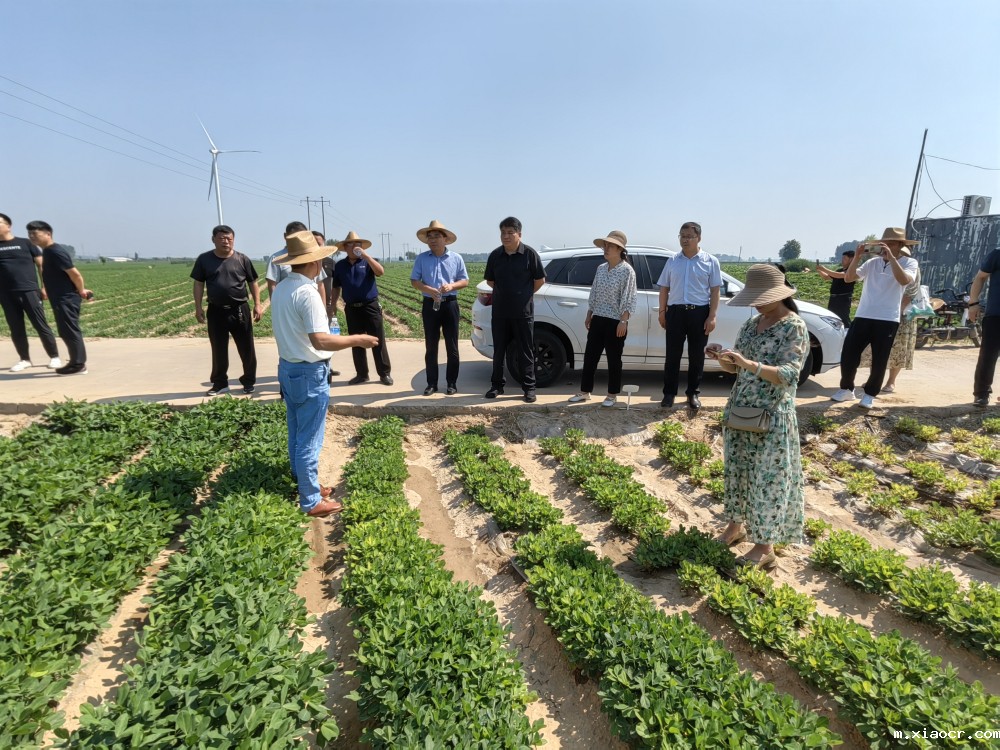 专家组首先调研了孙甘店镇前营村高油酸花生综合示范基地,现场查看了花生管理、长势情况,结合近期降雨偏少、高温干旱天气和当前苗情,对下一阶段管理提出了技术指导意见:对于有旺长趋势的春花生,应及时喷施烯效唑、调环酸钙等控旺剂,防止旺长倒伏;在浇水或降雨后及时进行中耕除草、迎针培土;及时防治棉铃虫等叶部害虫、预防叶斑病等病害发生;对于杂草较多的夏花生,可喷施相应的苗后除草剂进行防治。