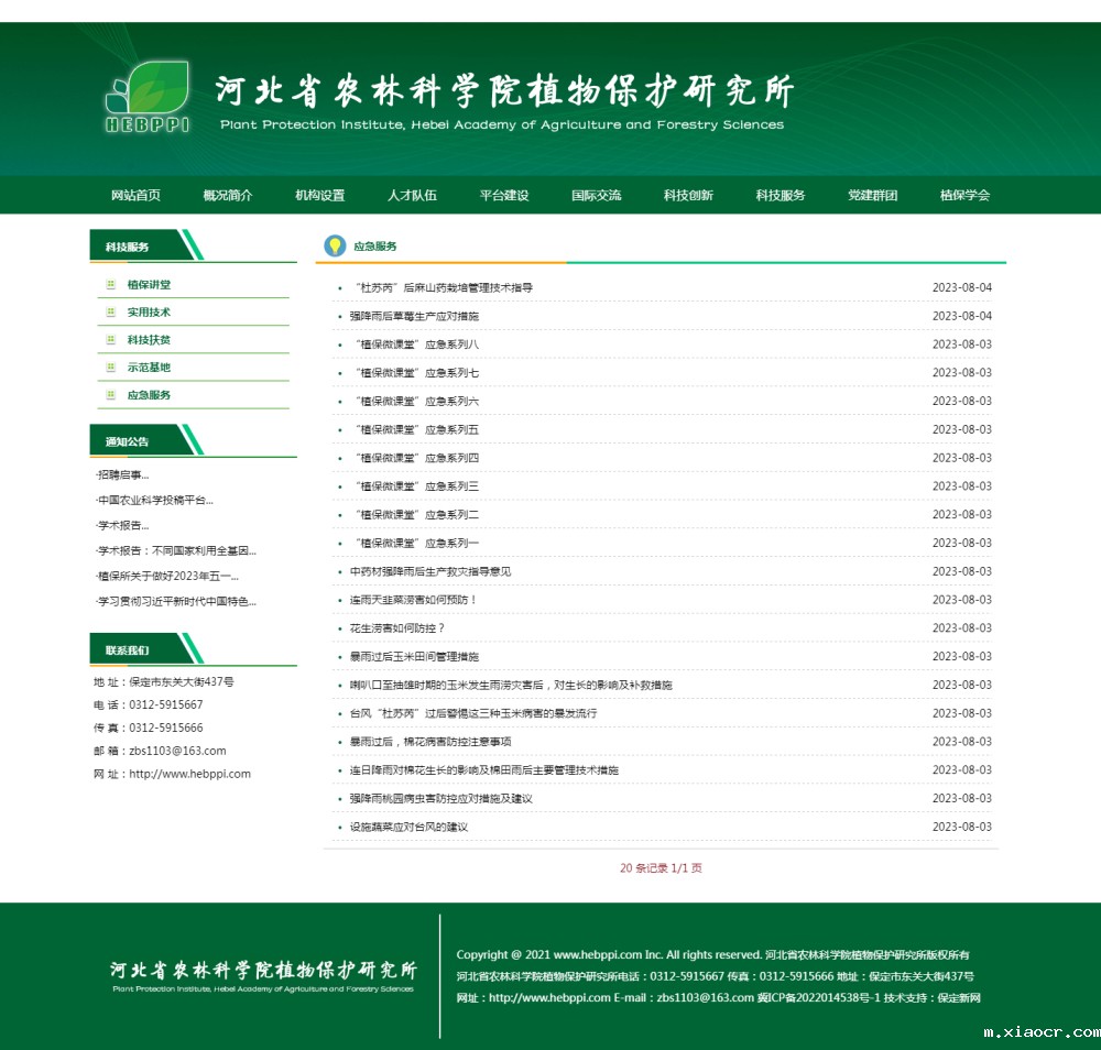 多种形式,宣传报道。及时将应急技术在燕赵农科、河北科技报、河北省植保协会、院所网站上发布,共发布技术15条。研究所网站单独设立“应急服务”版块,及时跟进发布雨涝灾害后各类作物应急管理措施。所职工积极通过个人微信朋友圈、自媒体等平台转发各项应急防范救灾建议。同时与保定气象局对接,“植保微课堂”应急技术系列结合天气预报,在学习强国、保定天气、保定市新闻传媒中心客户端等多家媒体渠道传播转载。