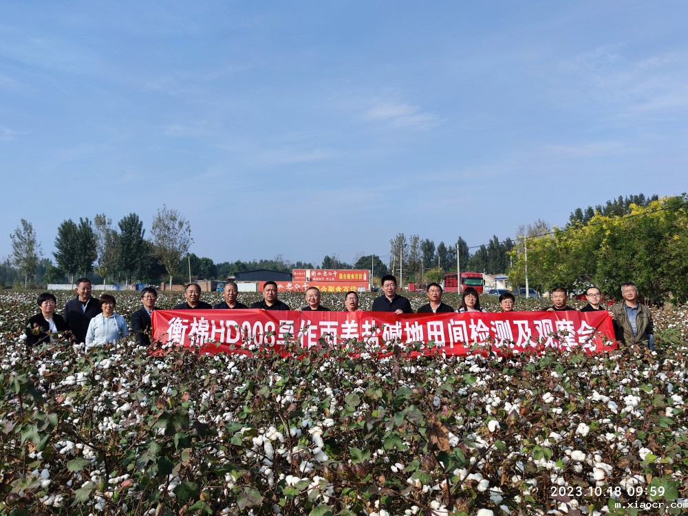 10月18日,旱作所在枣强县唐林镇“黑龙港抗旱耐盐棉花品种示范展示基地”举办耐盐抗旱棉花品种田间检测及观摩会,中国农科院棉花研究所叶武威研究员、省农科院棉花研究所张建宏研究员、衡水市种子站纪世东站长、旱作所李伟副所长、枣强县农业农村局相关负责人和部分种植户代表参加活动。