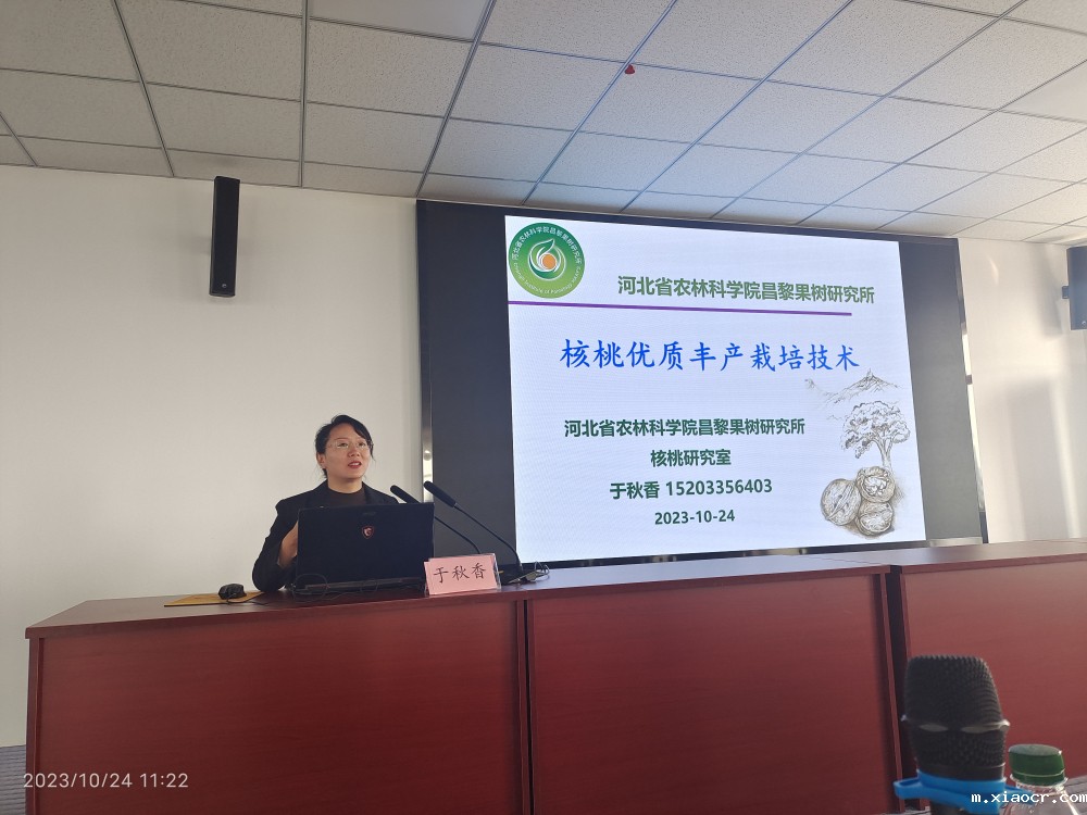 2023年10月24日,昌果所核桃团队为推进伟德bevictor中文版下载与秦皇岛市政府签订的院市科技合作项目开展,提高国家地理标志保护产品“石门核桃”品牌质量,增加核桃产业效益,与卢龙县农业农村局联合举办核桃高效绿色生产技术培训班。