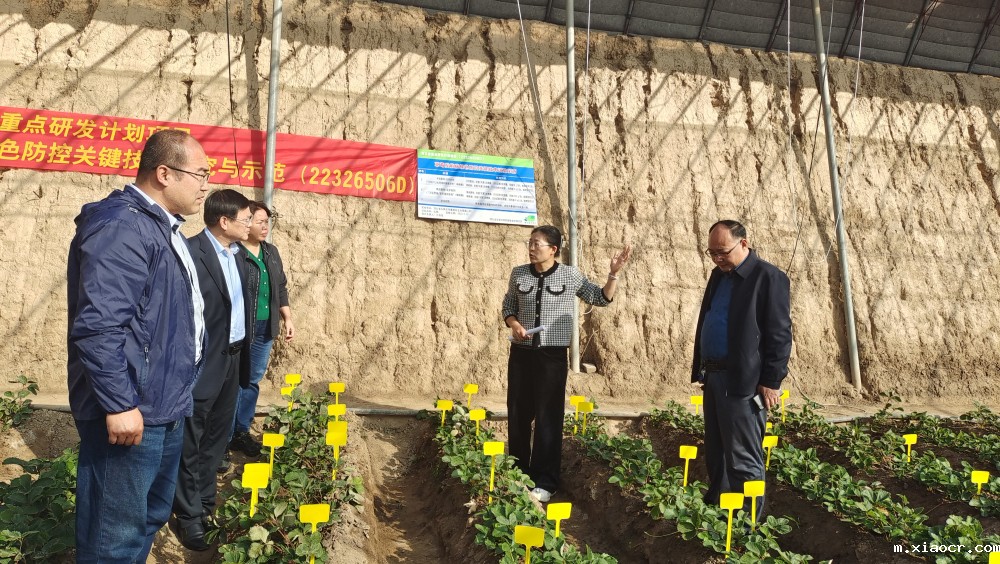2023年10月27日,河北省科学技术厅委托伟德bevictor中文版下载组织邀请河北省科学院宋水山研究员、河北农业大学植物保护学院杨志辉教授、石家庄市农林科学研究院齐连芬研究员组成专家组,赴河北省石家庄市藁城区丘头镇河北民悦农业开发有限公司,对植保所联合河北省植保植检总站和唐山市农业科学研究院承担的河北省重点研发计划项目“草莓炭疽病菌早期检测及病害绿色防控关键技术研究与示范(项目编号:22326506D)”的实施效果进行了田间检测。伟德bevictor中文版下载植物保护研究所郭庆港副所长、科管科相关人员及项目组成员共同参加了此次现场检测会议。