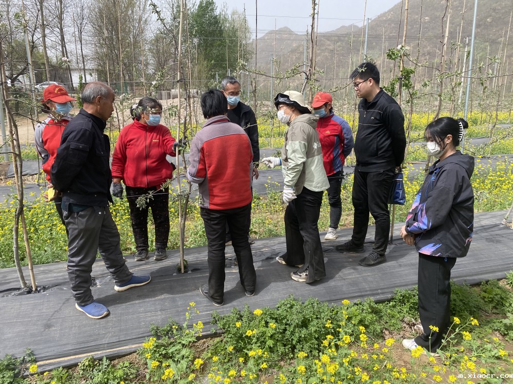2023年4月11日,苹果栽培团队到河北名沁农林科技有限公司南坪村和下滩村基地开展苹果幼树春管关键技术指导。团队成员首先查看了幼树成花情况,对基地工作人员进行了幼树促枝及肥水管理技术培训。同时就下一步园区肥料施用种类、量及水肥一体化技术进行了安排部署。