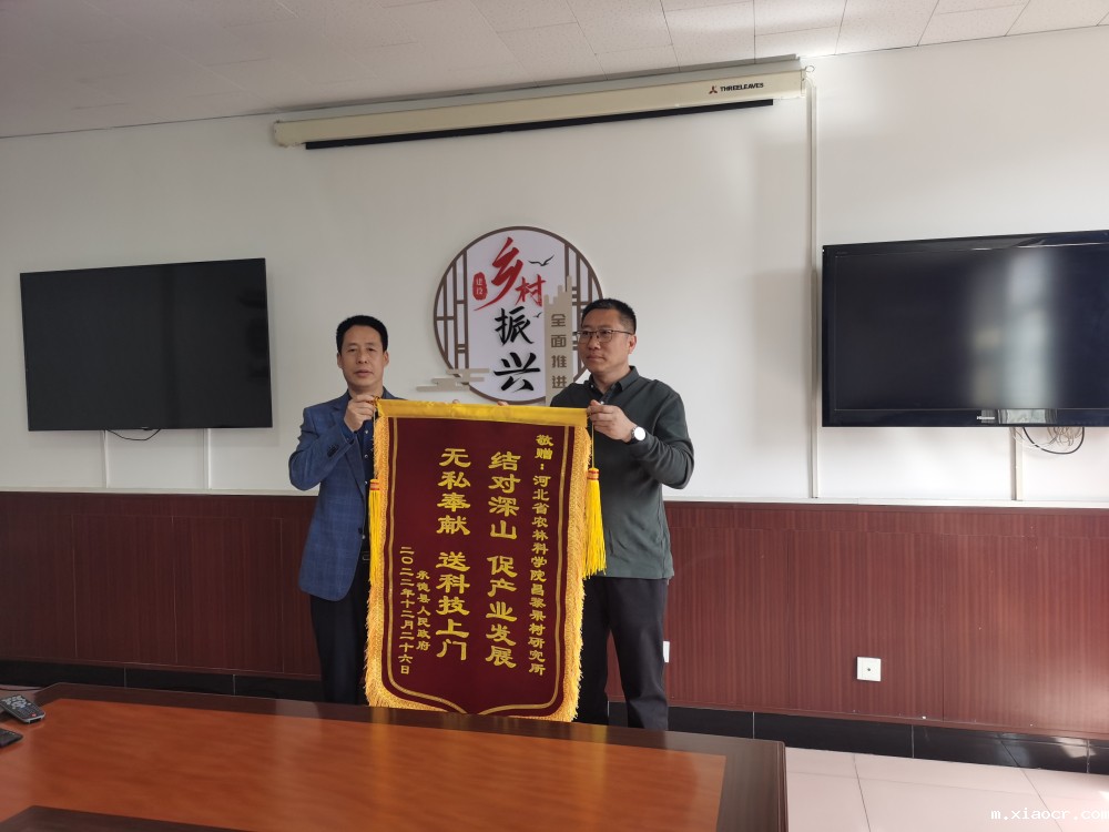 4月19日,承德县人民政府为表彰伟德bevictor中文版下载昌黎果树研究所科技人员为当地做出的突出贡献,特为伟德bevictor中文版下载昌黎果树所送来一面印有“结对深山,促产业发展;无私奉献,送科技上门”字样的锦旗。