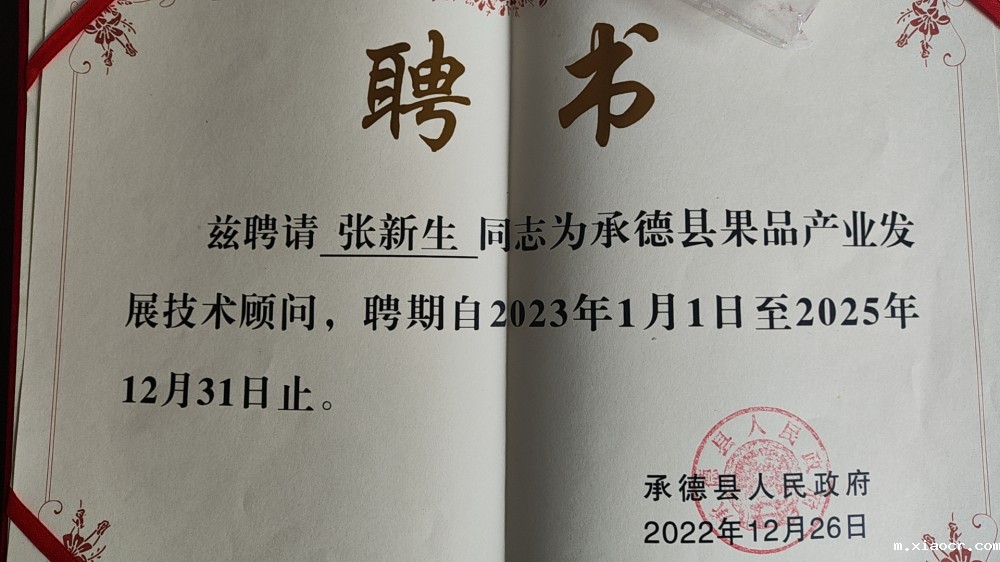 同时承德县政府聘请昌黎果树所张新生、赵同生、李春敏三位同志为承德县果品产业发展技术顾问。