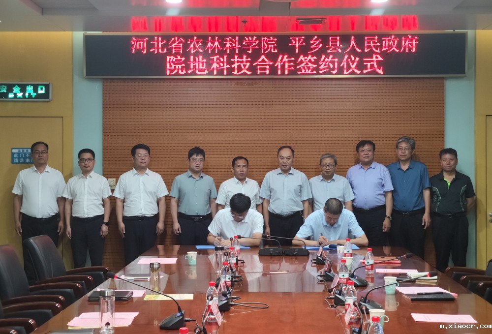 2023年8月10日,我院与平乡县人民政府在石家庄神农大厦举行了农业科技合作与服务框架协议签约仪式。院党组书记、院长张铁龙,院党组成员、副院长张强以及院科技成果转化部、粮油作物研究所、石家庄果树研究所、经济作物研究所主要负责同志和技术服务团队专家代表,平乡县委书记戴建亮,县委副书记张朝华,县委常委、县委办主任豆慧波,县政府副县长董辉以及县乡村振兴局、农业农村局有关负责同志等出席签约仪式。张强副院长和董辉副县长代表双方签署了农业科技合作与服务框架协议。会议由院科技成果转化部部长王国印主持。