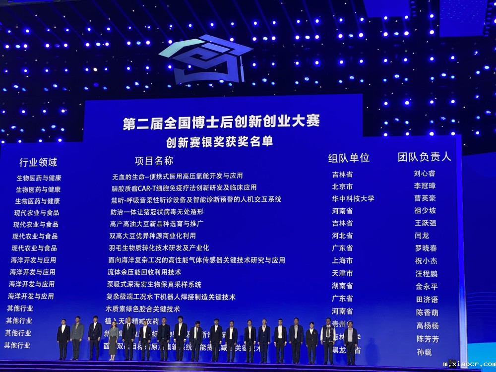 10月26日至28日,由人力资源和社会保障部和山东省人民政府联合主办的“第二届全国博士后创业创新大赛”总决赛在山东省烟台市圆满落下帷幕,全国一共1457个参赛团队到场参加总决赛,经过激烈角逐,共产生55个金奖、109个银奖、164个铜奖,共同呈现了一场精彩的青年人才科技创新盛宴。