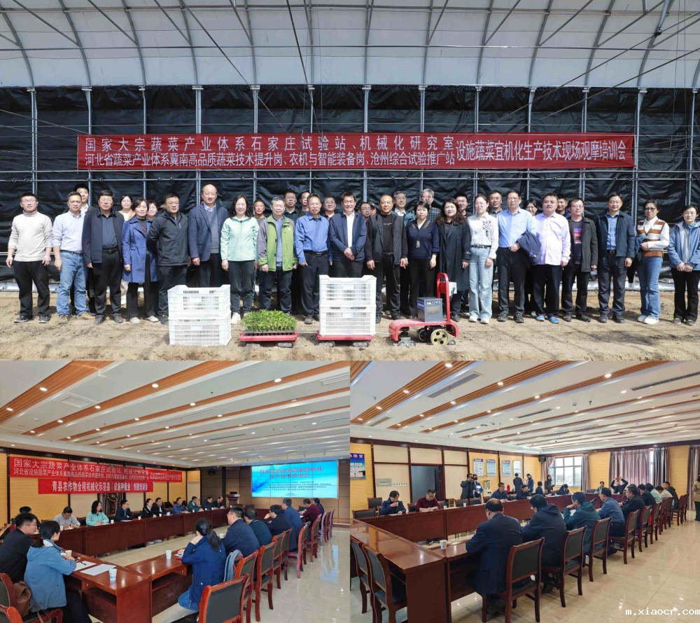 针对目前设施蔬菜生产劳动力成本高、劳动力逐渐老龄化等问题,2024年3月30日,我院经作所蔬菜栽培研究室、河北省蔬菜产业技术体系冀南高品质蔬菜技术提升岗联合农机与智能装备岗、沧州试验站,对接国家大宗蔬菜产业体系机械化研究室、石家庄试验站、天津试验站和张家口试验站,在沧州青县绿豪农业专业合作社开展设施蔬菜宜机化生产技术现场观摩交流活动。本次活动邀请了农业农村部设施种植全程机械化专家指导组专家、农业农村部机械化总站加工设施处副处长王明磊及省农业农村厅特色产业处聂承华处长到会指导,国家大宗蔬菜产业技术体系机械化研究室7位岗位专家现场指导交流。院党组成员、副院长王旗出席并讲话,院科研管理部负责同志、经作所相关领导及学科专家参加活动。活动由经作所所长王明秋主持。