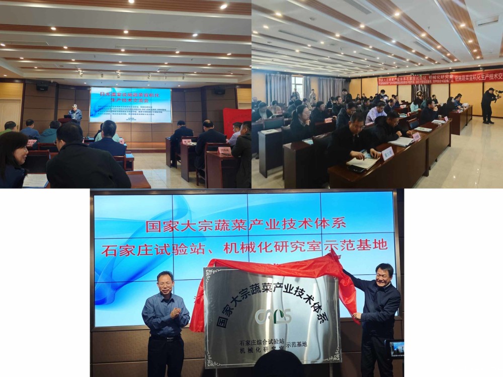 王旗副院长对本次交流研讨活动给予高度评价,希望通过示范基地平台进一步深化拓展多方合作,推动国家及河北省产业体系协同发展,为河北省蔬菜产业的高效发展做出贡献。王旗副院长和国家大宗蔬菜产业技术体系机械化研究室主任孙周平教授一起为基地揭牌。