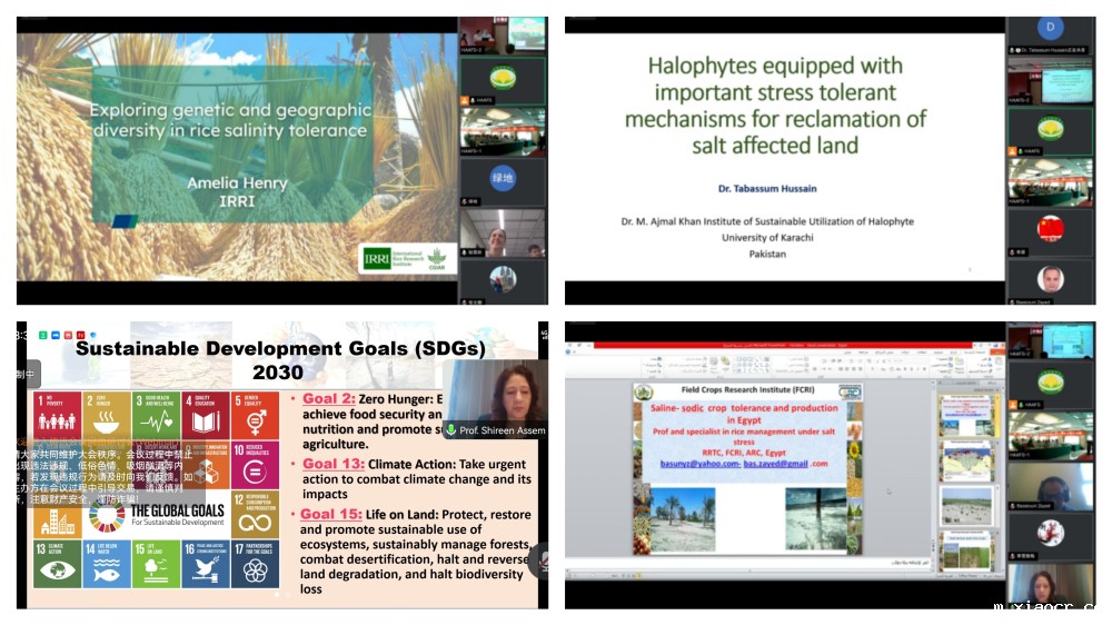 会议特邀国际水稻研究所高级科学家Amelia Henry博士、香港大学Clive Lo博士、中国农业大学张文娜博士、巴基斯坦卡拉奇大学Tabassum Hussain博士、埃及农业研究中心教授Shireen Kamal Assem博士、埃及农业研究中心大田作物研究所教授Bassiouni A.Zayed博士等14名国内外专家,围绕会议主题在耐盐基因挖掘、耐盐作物生理以及盐碱地治理技术方面作了学术报告。学术报告分四个阶段进行,分别由院植保所副所长郭庆港、旱作所副所长李科江、国家高粱改良中心河北分中心主任吕芃和资环所副所长贾良良主持。会上,专家们分享了最新的研究进展、交流了科研心得和实践经验,学术氛围十分浓厚。