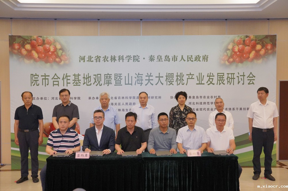 会上,举办了院市合作科技成果转化签约仪式,我院昌果所、石果所、粮油所与秦皇岛琳海生态农业有限公司、昌黎英侠果蔬种植专业合作社、金果缘视觉科技有限公司、河北中薯农业科技有限公司,分别就樱桃新品种、草莓新品种转让以及智能分拣线合作研发、甘薯合作育种达成了科技成果转化协议。与会领导嘉宾现场品鉴了我院精心准备的大樱桃、番茄、黄瓜、甘薯、板栗等院市合作成果产品,实地考察了山海关区樱桃精品示范基地。院市合作启动以来,我院昌果所玲珑脆等5个樱桃新品种落地山海关,以玲珑脆为核心培育壮大了山海关大樱桃区域公用品牌,琳海公司玲珑脆樱桃每斤售价高达298元,“樱韵樱桃”进入Ole、山姆、鑫荣懋等高端渠道,成为高端品牌,并将逐步走出国门,开创了院市合作引领产业高质量发展新途径。琳海公司朱海洋总经理对我院示范的樱桃新品种和配套栽培技术给予了高度肯定,希望我院更多的优质科技成果在琳海得到转化。