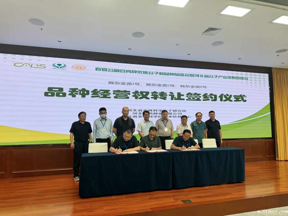观摩会通过优质谷子新品种观摩和品质鉴评、藁城宫米加工产品展示、谷子-大豆复合种植技术基地观摩,向与会人员展示了谷子研究所近几年围绕谷子种业创新和产业高质量发展,通过春夏谷融合育种取得的一系列育种成果及在技术集成示范和全产业链融合发展方面取得的成效。会议进行了冀杂金苗4号、5号、6号品种经营权转让和优质谷子订单收购签约仪式。冀杂金苗4号、5号、6号聚合了春谷优质和夏谷中矮秆、抗倒、抗病的特性,品质显著提升,春夏谷区均适宜。其中,冀杂金苗6号转化金额达215万元,创造了我国常规谷子品种成果转化金额的最高记录。