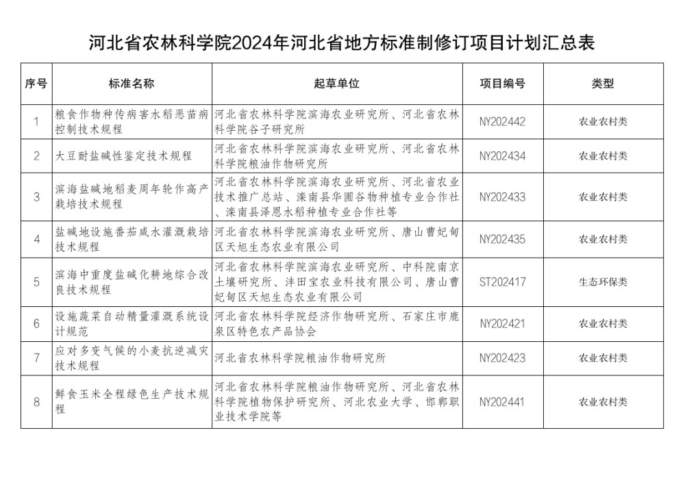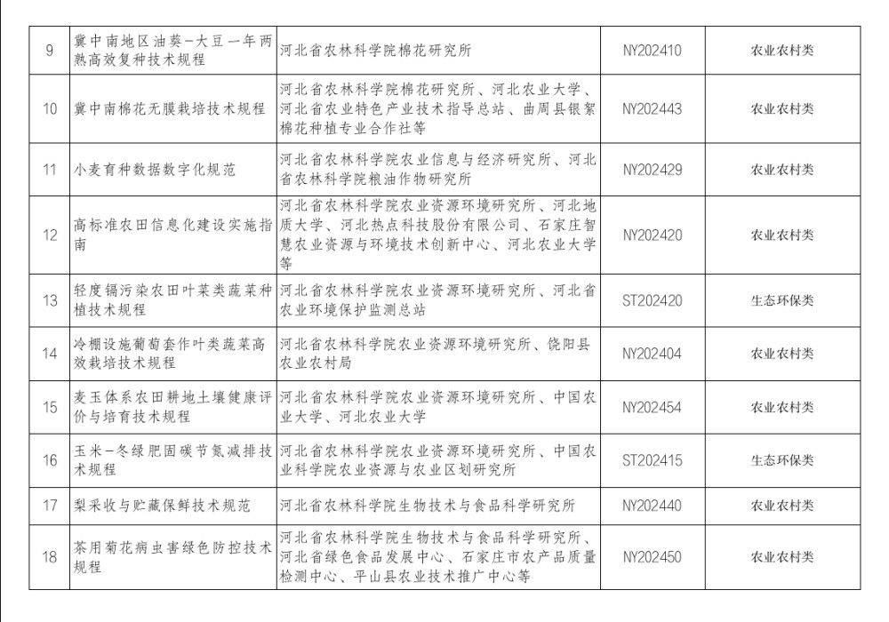 近日,河北省市场监督管理局印发了《河北省市场监督管理局关于下达2024年河北省地方标准制修订项目计划的通知》,最终确定了59项农业农村类地方标准制修订项目,我院主持19项、参与2项,另主持生态环保类3项,获批数量在省内农林领域居领先地位,为十四五以来最多的一年。 标准是经济社会发展的重要技术支撑,助推创新发展,引领时代进步,促进互联互通。我院长期以来致力于标准制修订工作对提升我省相关产业的创新力、竞争力和影响力具有重要意义。
