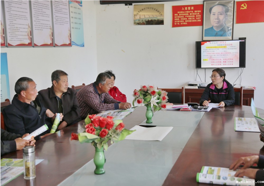 4月27日,全国人大代表曹彩云到深州市护驾迟镇前营村新品种新技术示范基地和村民面对面,宣讲传达习近平总书记重要讲话和全国两会精神,并结合专业知识,针对目前小麦抽穗扬花关键期,进行了技术指导。村民们聚在一起,认真聆听曹彩云作的全国两会精神宣讲报告,她用通俗易懂的语言,将两会内容讲给群众听,鼓励村民们协力推进乡村振兴。