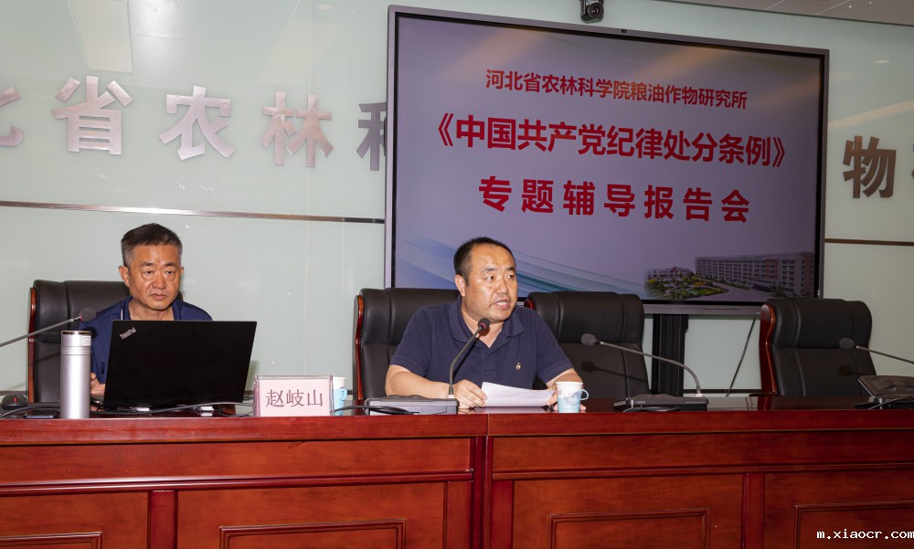 为了深入开展党纪学习教育,深化《条例》理解运用,2024年5月23日上午,粮油所邀请河北省社会主义学院赵岐山教授作了题为“《中国共产党纪律处分条例》解读”专题辅导报告。所党总支委员、副所长闫龙主持报告会。全所党员干部80余人参加了报告会。