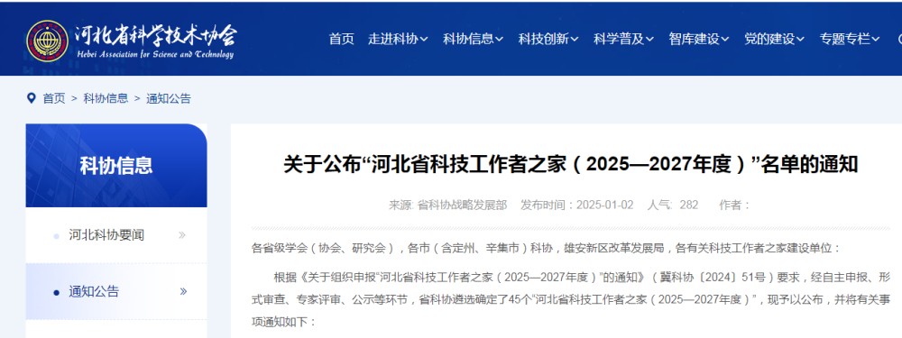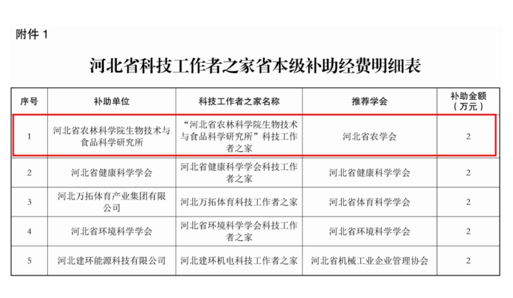 近日,河北省科学技术协会下发《关于公布“河北省科技工作者之家”(2025--2027年度)”名单的通知》,由河北省农学会推荐申报的“伟德bevictor中文版下载生物技术与食品科学研究所”科技工作者之家榜上有名,正式进入建设期。“科技工作者之家”由河北省科协征集,经自主申报、形式审查、专家评审、公示等环节,确定了45个“河北省科技工作者之家(2025-2027年度)”。